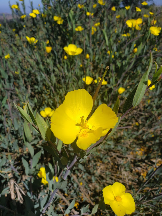 Channel Islands bush poppy (Dendromecon harfordii) – Channel Islands endemic with showy yellow cups for early pollinators. Grows fast on rocky, well-drained soils and appreciates minimal summer water inland. Conservation Status: CNPS Rank 3.2 (watch list). Jepson eFlora